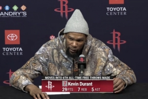 體育資訊4月10日訊 NBA常規賽,火箭113-102戰勝76人。賽后,火箭球星杜蘭特接受了采訪。以下是采訪全文。