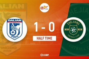 體育資訊4月10日訊 中超第5輪,大連英博主場對戰(zhàn)浙江隊(duì),半場結(jié)束英博1-0領(lǐng)先。