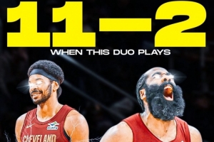 兩人共同出戰(zhàn)的比賽,騎士取得了11勝2負(fù)的戰(zhàn)績。