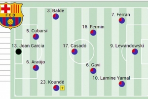 鋒線上最大的疑問是亞馬爾是否會出場,原則上費蘭·托雷斯將首發(fā)出戰(zhàn)此役,萊萬則可能繼續(xù)首發(fā),拉什福德可能會休息,如果弗里克能夠說服亞馬爾輪休,魯尼·巴德吉將出任右邊鋒。