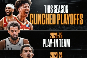 老鷹戰(zhàn)績(jī)46勝35負(fù),排名東部第五、正式鎖定季后賽(東部前六)和東南區(qū)冠軍。
