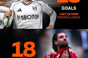 本賽季在英超賽場上,富勒姆在比賽最后20分鐘共打進18球,而利物浦在這個時間段里則丟了18球,兩隊的表現大相徑庭。