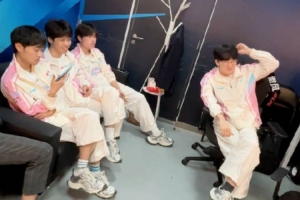 體育資訊4月12日訊 BLG分享選手后臺花絮,并配文:沙發爭奪戰(其實是k去采訪了。