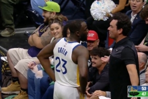 在本場比賽中,追夢和一位球迷在場邊發(fā)生口角;對此,這位球迷(名叫薩姆·格林)說自己用“安吉爾·里斯”的口號來挑釁追夢格林,因為盡管他搶下了幾個籃板,但他還沒有嘗試過任何投籃。