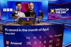 體育資訊4月13日訊 BBC統計了2021年以來4月份沖刺階段阿森納、曼城在英超比賽中的戰績,阿森納場均1.5分、曼城場均2.7分。
