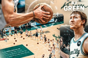 首節比賽中,AJ·格林命中3記三分,本賽季三分命中數來到300記,超越雷·阿倫(00-01賽季/299記)升至隊史第一。