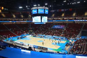 比賽結(jié)束后,場邊發(fā)生了一個小插曲,上海男籃球員李添榮想和場邊的球迷擊掌互動,但是遭到北京主場工作人員的攔截。