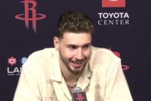 賽后申京接受了采訪,談到本場最后時刻自己的表現,他說:“我打進絕平球后開心不起來因為我(前一回合)失誤了,很惱火。但最終能贏球我很開心?!?/p>