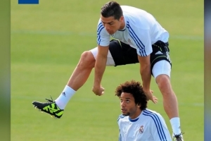 馬塞洛曬出與C羅在皇馬效力期間的合照,內容為C羅從馬塞洛的頭上跳過,馬塞洛一臉驚訝。