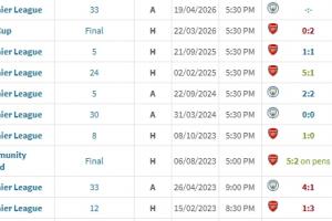 雖然不久前的聯賽杯決賽阿森納0-2不敵曼城,但槍手在英超對曼城已5場不敗(2勝3平),其中客場分別是0-0、2-2。