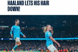 最終,曼城4-1大勝,德布勞內(nèi)2射1傳,哈蘭德最后時刻披頭散發(fā)打入一球,曼城也以“哈蘭德放下頭發(fā)”為這一瞬間的標(biāo)題。