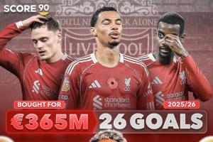 利物浦總共花費3.65億歐引進(jìn)維爾茨、埃基蒂克、伊薩克,三人本賽季總共打入26球,只比迪亞斯多攻入3球。