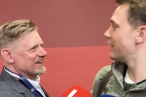 體育資訊4月16日訊 歐冠1/4決賽次回合,拜仁vs皇馬,第1分鐘,諾伊爾出球直接傳給居萊爾,后者吊射空門得手,不過拜仁最終成功晉級。賽后,舒梅切爾在混合采訪區(qū)與諾伊爾開起了玩笑。