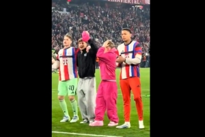 卡爾因傷缺席此役,賽后他與拜仁隊友一起慶祝晉級,這位小將穿著一身粉色衣服,在球員之中格外顯眼,他的帽子還被比朔夫搶走。