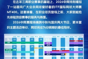 體育資訊4月17日訊 中網官方發布2026年中網賽歷,2026年中網賽程將橫跨中秋與國慶兩大節日。