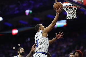 體育資訊4月18日訊 附加賽生死戰(zhàn)上半場,魔術(shù)68-37領(lǐng)先黃蜂31分。