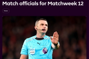 英超第12輪裁判: