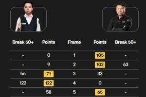 希金斯和羅伯遜單局打了37分鐘后一起去廁所,該局最終打了56分鐘