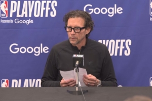斯奈德:“我覺得我們在轉移球方面本可以做得更好。另外我想說,即便你能成功沖擊內線并把球分出來,最終獲得的也不一定是你最想要的投籃機會。去定義什么是好的投籃機會真的很難。尤其是在季后賽的舞臺上,你必須讓球員們保持自信,相信自己能夠主動出擊、創造得分機會。并不是你每一次出手的空間都能像訓練時那樣開闊,那是比賽中不切實際的奢望。你能做的就是不斷運轉,去爭取盡可能最好的出手機會。我們知道該怎么打,現在需要的就是堅持執行,并在各個方面都精益求精。這畢竟只是系列賽的首戰,我們會回去尋找改進的空間,我知道球員們心里也很清楚這一點。”