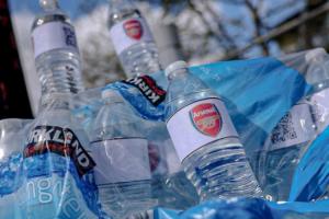 體育資訊04月19日訊 據記者James Olley報道,有曼城球迷在阿提哈德球場外售賣貼有阿森納隊徽的礦泉水,售價2鎊一瓶。