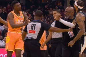 GIF-布萊恩特擋人時推倒特倫特引發沖突