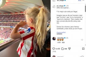 國王杯決賽,馬競點球大戰不敵皇家社會,無緣冠軍。埃里卡·喬佩雷納社媒曬出帶著孩子觀賽的照片,配文:“很難解釋……而最美好的尚未到來。