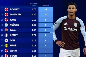 體育資訊4月20日訊 維拉前鋒沃特金斯本賽季英超進球上雙,這已經是他連續第6個賽季做到這一點。德轉也盤點了英超歷史球員連續進球上雙紀錄榜,具體如下(期間總進球數+連續上雙賽季數):