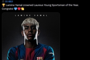 巴薩官方寫道:“拉明·亞馬爾榮膺勞倫斯年度最佳青年運動員獎。祝賀!”