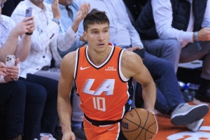 本場比賽博格丹·博格達(dá)諾維奇出戰(zhàn)26分29秒,9投3中,三分6中1,罰球3中2拿到9分7籃板5助攻1搶斷。
