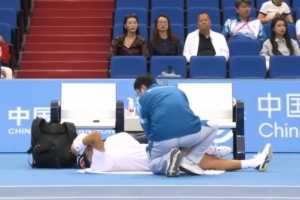 全運會網球項目今天展開單打1/4決賽的較量,商竣程對陣布云朝克特,首盤比賽,商竣程一度申請醫療暫停,3-6布云朝克特。