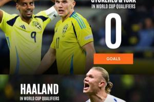 體育資訊11月18日訊 歐洲區(qū)世預(yù)賽已經(jīng)接近尾聲,哈蘭德率領(lǐng)的挪威8戰(zhàn)全勝挺進(jìn)世界杯,他本人更是8場16球領(lǐng)跑射手榜,與另一支擁有豪華鋒線的球隊瑞典形成了鮮明反差。