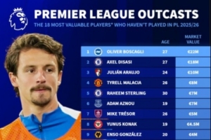 本賽季英超仍未出場球員身價(jià)排行:
