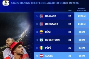 體育資訊11月20日訊 世界杯預選賽僅剩6個附加賽名額待定,多支國家隊實現了晉級夢想,《轉會市場》也列出了多位已經為世界杯首秀等待多年的名將。