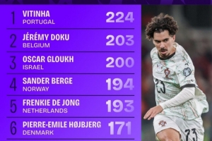 體育資訊11月20日訊 本屆世歐預小組賽已經告一段落,squakwa也統計了本屆賽事在進攻三區的成功傳球情況,維蒂尼亞居首。