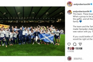 體育資訊11月20日訊 蘇格蘭隊長羅伯遜更新社媒動態(tài),表達了直通世界杯的激動之情。