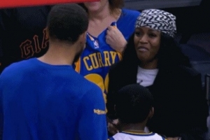 本場庫里因腳踝傷勢作壁上觀,但他還是在賽前積極配合球迷合影留念,小球迷母親露出了欣慰的笑容。