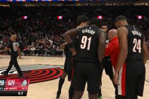 本場比賽最后一個暫停期間,開拓者助教內特-比約克格倫接過教鞭為球隊安排戰術,與球員交流安排細節,主教練斯普利特則在一旁觀看。