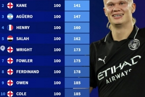 體育資訊11月3日訊 德轉盤點了英超歷史達成百球最快用時榜,而哈蘭德107場98球十分有望創造新的紀錄,以下為具體榜單: