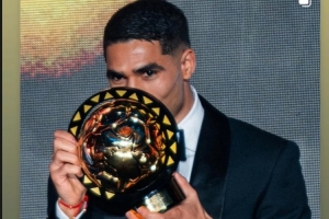 巴黎邊衛阿什拉夫當選2025年非洲足球先生,拉莫斯社媒曬出阿什拉夫領獎的照片,配文:“祝賀你,我的兄弟,你是最棒的(Number 1)!”