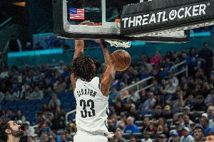 籃網(wǎng)中鋒克拉克斯頓上半場效率不俗但罰球很鐵,他打了16分半鐘,8投5中、罰球5中2,得到12分9籃板4助攻,正負(fù)值高達(dá)+20!