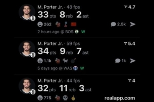 數據美媒Real Sports曬出小波特本賽季30+場次(5次)數據,并寫道:“進攻頭號選擇的小波特。”