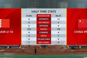 附國(guó)少隊(duì)vs巴林半場(chǎng)數(shù)據(jù)(巴林在前):