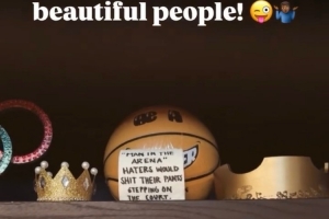 詹姆斯曬出了他在自家衣柜里擺放的一張激勵自己的手寫字條:“‘競技場中的人’黑子們一踏上球場就會嚇得屁滾尿流。”