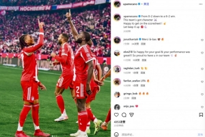 體育資訊11月23日訊 拜仁在本輪德甲讓二追六、成功逆轉弗賴堡,于帕梅卡諾也斬獲進球。