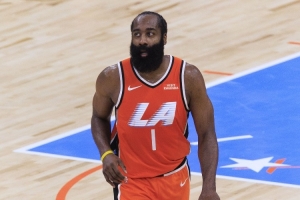 全場比賽,快船球星哈登出戰35分鐘,26中17,三分16中10得到55分3板7助攻1搶斷。