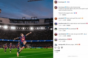 費爾明也在賽后通過社媒曬出自己的激情慶祝照,并配文:“多么精彩的巴薩回家之戰!能在諾坎普球場出場并進球,簡直像做夢一樣!感謝巴薩球迷的支持!”