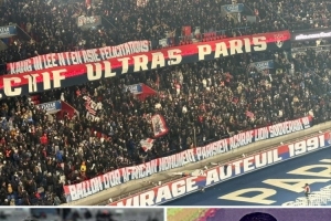 巴黎球迷此役拉出橫幅,祝賀李剛?cè)剩▉喿懵?lián)最佳國際球員)和阿什拉夫(非洲足球先生)獲獎(jiǎng)。