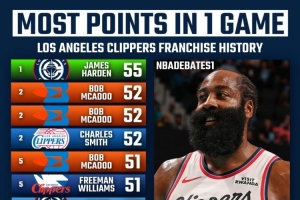 快船隊(duì)史單場得分榜前十詳細(xì)排名:
