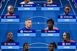 前鋒:塞梅尼奧(伯恩茅斯)5500萬歐、恩德里克(皇馬)3500萬歐、菲爾克魯格(西漢姆聯)1000萬歐、斯特林(切爾西)700萬歐
