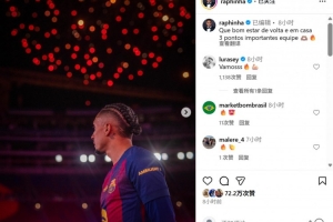 本場比賽也是巴薩回歸諾坎普球場首戰,迎來傷愈復出的拉菲尼亞在社媒曬照寫道:“回家的感覺真棒!球隊取得關鍵三分”